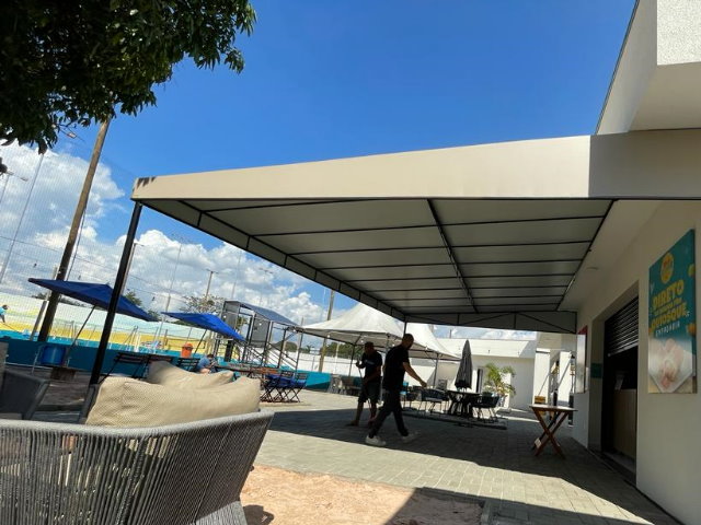 -Estabelecimentos Comerciais: O Toldo Fixo oferece proteção contra sol e chuvas e adiciona valor estético à fachada do seu negócio, oferecendo conforto à todos os seus clientes.