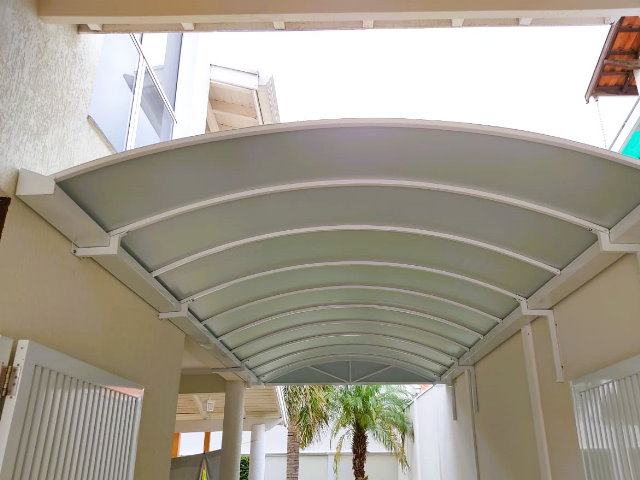 -Corredores e Entradas: O Toldo Fixo evita o acúmulo de água da chuva e mantém o ambiente seco e funcional.